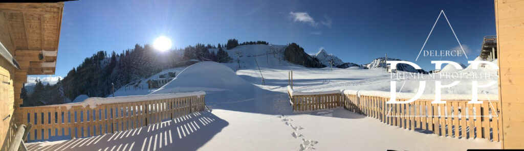 Sur le versant sud du village, les beaux chalets individuels bénéficient d’un ensoleillement maximal et d’une vue magnifique sur la station et le Roc d’Enfer